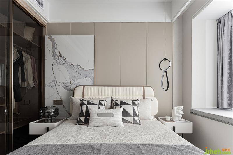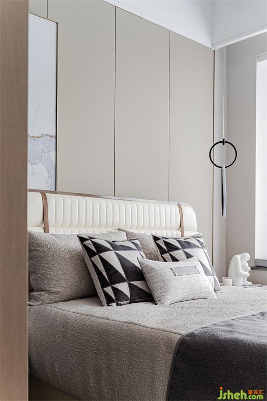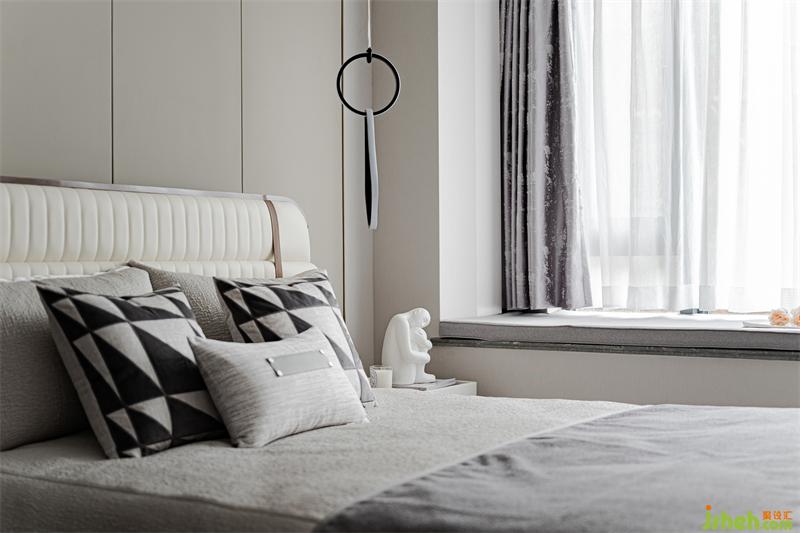 臥室為了平衡色彩與空間的關(guān)系,以純白色為底,高級(jí)灰為襯托,這股安逸柔和的素雅感飄進(jìn)臥室,頗像是詩(shī)意的留白,進(jìn)一步強(qiáng)調(diào)了臥室要營(yíng)造的靜謐舒適之感。