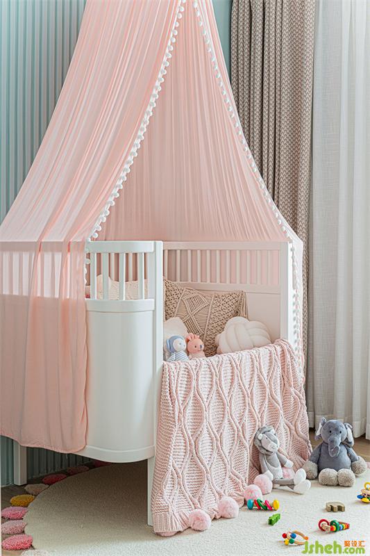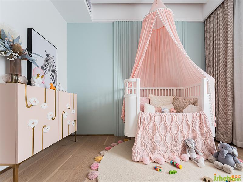 兒童房空間中融合女孩兒獨(dú)特的柔美可愛(ài)氣息,配以粉嫩的床品擺件及裝飾,意于創(chuàng)造全是期待與溫柔可愛(ài)的美麗童趣空間。