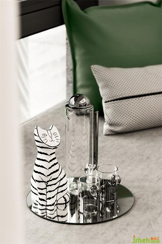 軟裝簡約明快,活潑自然。在淺灰色調(diào)的基礎(chǔ)上,我們利用柔美的線條,生動的色彩,將清靜與優(yōu)雅存于空間。茶幾、沙發(fā)凳、抱枕等用品,以高飽和度的綠色,流露出濃濃的自然風(fēng)情,讓空間生機勃勃。意大利進口竹節(jié)落地?zé)粢詧A潤的造型示人,豐富了空間變化,舒緩了快節(jié)奏的城市生活,彰顯出悠然灑脫的生存哲學(xué)。