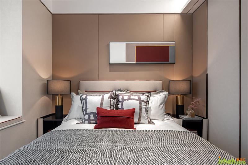 主臥以簡(jiǎn)約的元素表現(xiàn)東方風(fēng)格的古樸大方,同時(shí)將奢華嵌入細(xì)節(jié)中,樣板房設(shè)計(jì)以素色的東方審美符號(hào)為主,采用柔和的中性色彩,給人優(yōu)雅溫馨、自然脫俗的感覺,將傳統(tǒng)風(fēng)韻與現(xiàn)代舒適感完美地融合在一起。
