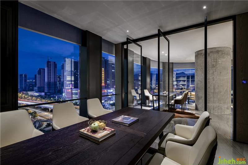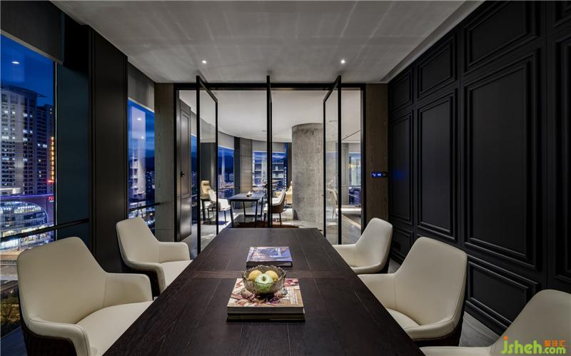 當(dāng)設(shè)計團(tuán)隊進(jìn)行空間創(chuàng)作的構(gòu)想,為了及時地與伙伴交流互換,碰撞不同的思想,探討關(guān)于生活的無限可能性,幕墻就成為了盛放意識的容器。會議室增強(qiáng)了白色玻璃幕墻的信息輻射作用,達(dá)到思想交互的開放式創(chuàng)作。
