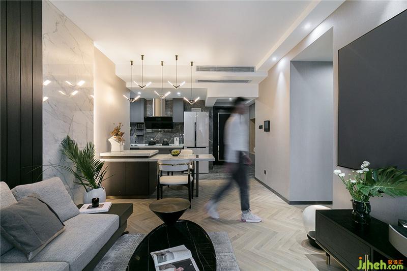 空間使用棉麻、勞倫黑金、真皮、木飾面這些豐富的材質(zhì),色彩歸納于黑白灰的基調(diào)中,讓空間統(tǒng)一又富有變化。裝修公司