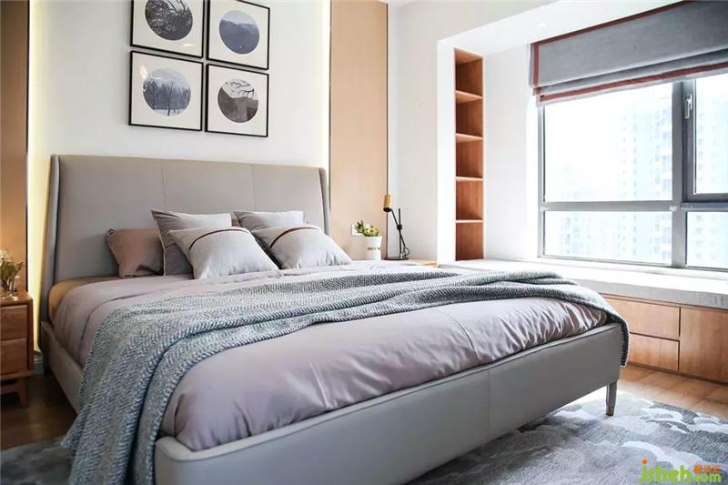 男女主人都非常喜歡看書,自然少不了要放書的書架,面對(duì)這個(gè)方方的空間要放在那里呢?我們?cè)诖斑呑隽艘粋€(gè)“假”飄窗左右兩邊可以放置書,靠在飄窗拿起一本書泡上一壺茶,累了就望一望窗外的美景,同時(shí)下面的臺(tái)子可以收納儲(chǔ)物。