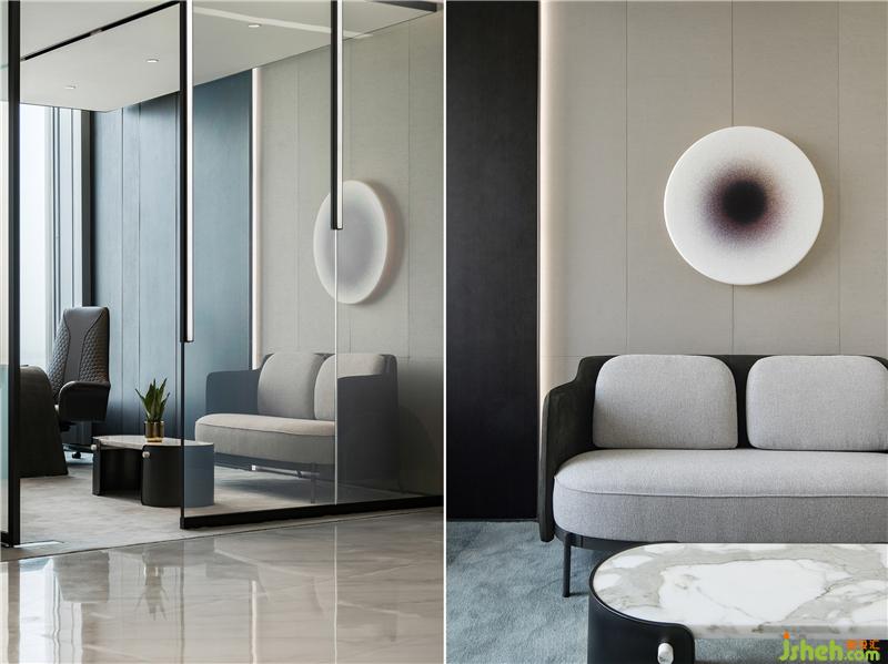 藝術(shù)是空間的底色,藝術(shù)作品應當具有人文關(guān)懷和文化啟蒙。設(shè)計師根據(jù)行業(yè)屬性及企業(yè)文化創(chuàng)作的雕塑作品“源”,通過一層層的亞克力、形似煤炭的石子,疊加構(gòu)成樹的姿態(tài),形成虛實的變化,也成為吸引人駐留的一隅清凈處。