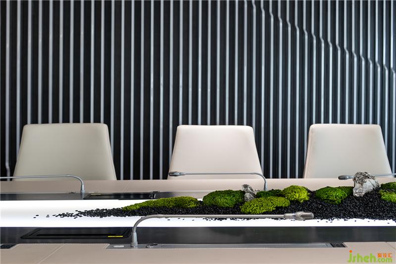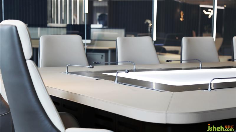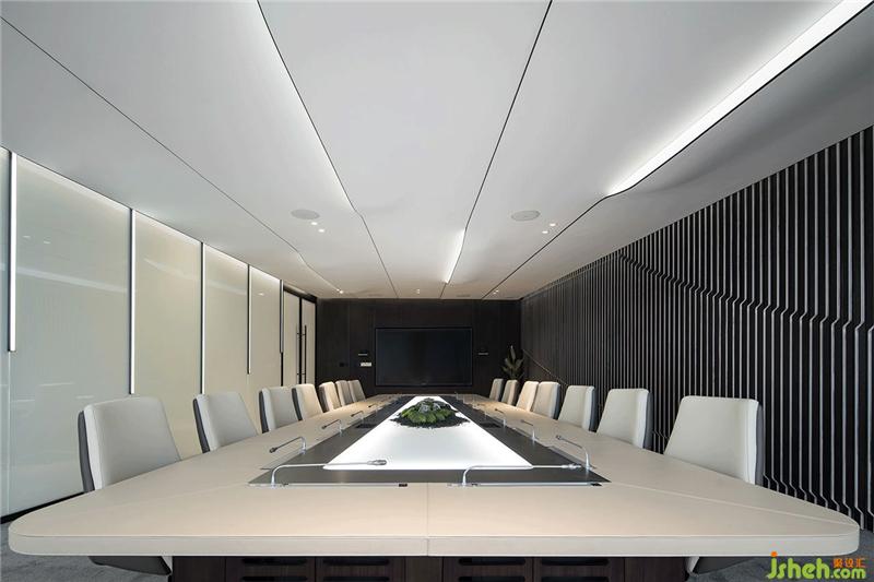 可容納16個人的會議室,背景以水波紋為元素,與天花板的曲線交相呼應,傳達了思想交流和碰撞的過程。環(huán)保高效的無紙化辦公系統(tǒng)體現(xiàn)出深圳的特質--效率、務實、國際化。會議室和獨立辦公室的隔斷使用霧化玻璃,兩者的獨立和開放可以自由切換。