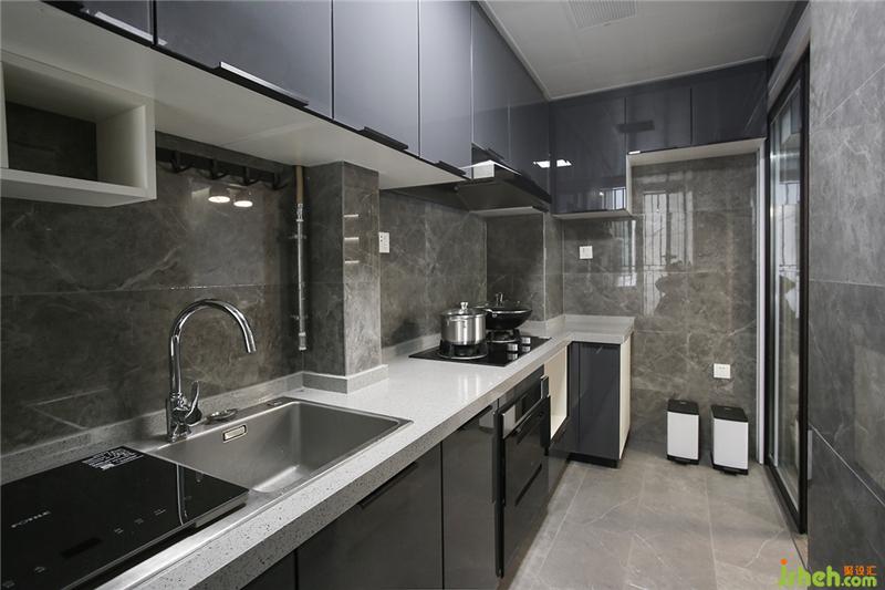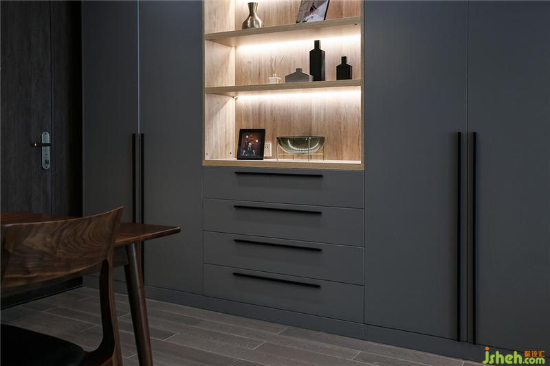 一灰到底,櫥柜使用耐污的納米門(mén)板,廚房雖小五臟俱全,因此是設(shè)計(jì)的重點(diǎn),屋主不喜歡瓶瓶罐罐或各式料理工具是擺在臺(tái)面或掛,海邊的風(fēng)塵很大,掛在外面增加收拾工作量。提前挑好消毒柜、烤爐、洗碗機(jī)、油煙機(jī)保證這些大家伙融入家里時(shí),可以尺寸貼合整潔不會(huì)突兀。