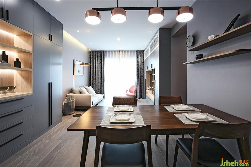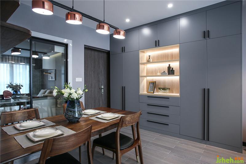 玄關(guān)&鞋柜頂天立地的組合簡(jiǎn)直是收納神器,而且空間利落顯得高大。廚房的門(mén)與餐廳連接的墻打通,做成玻璃推拉門(mén)。