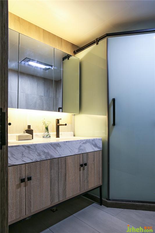 最大限度的利用好洗臉臺(tái)和鏡柜,各種護(hù)膚品、漱口水、牙線往里一放很方便。