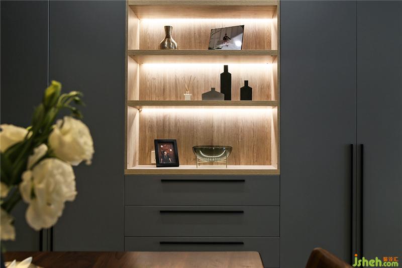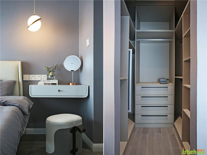 主臥的衣柜多掛式的,女主喜歡將衣服掛起來。一些未使用到的化妝品抽屜可以放置,耳環(huán)項(xiàng)鏈等也放抽屜里不至于被孩子隨時(shí)拿出來玩。隱藏的保險(xiǎn)柜可以放重要的證件。還設(shè)計(jì)了每日用的包包的地方。