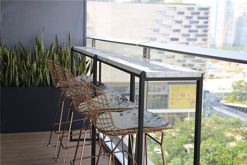 陽臺拐角的地方設置一組休閑吧臺吧椅,