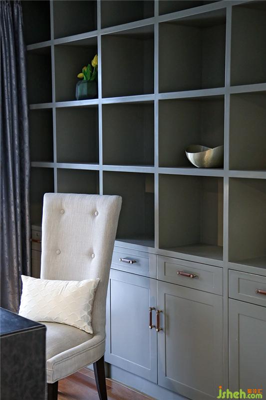整面的書(shū)柜及收納柜可以擺放飾品和書(shū),