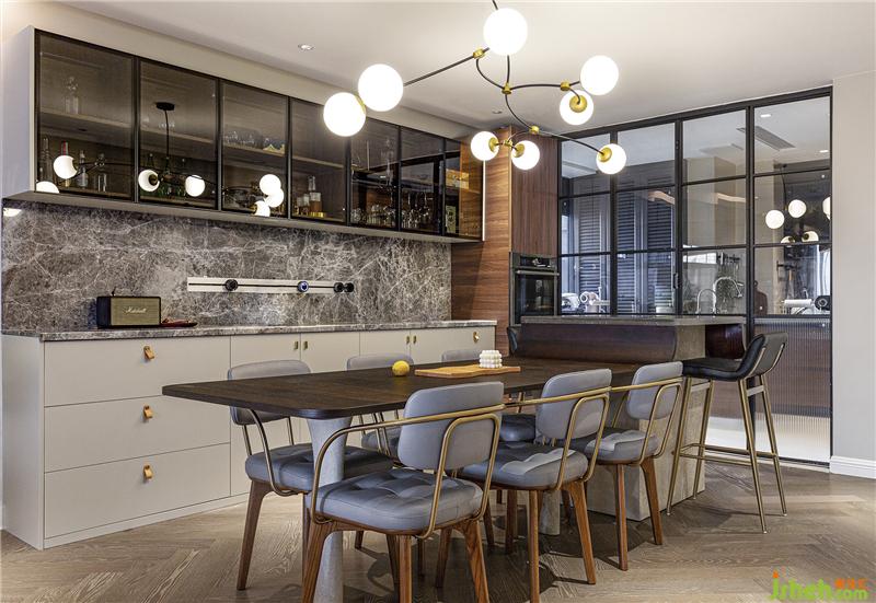 軌道插座可以隨意移動(dòng)和增加插座的數(shù)量,滿(mǎn)足各類(lèi)小家電的使用需求。餐桌中島部分也是花藝陳設(shè)的最佳位置,花團(tuán)錦簇隨時(shí)準(zhǔn)備一場(chǎng)盛大的party。室內(nèi)設(shè)計(jì)師