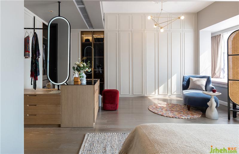 次凈衣→鏡子→梳妝臺(tái)→衣柜,達(dá)成屋主舒適方便的生活秩序。室內(nèi)設(shè)計(jì)師