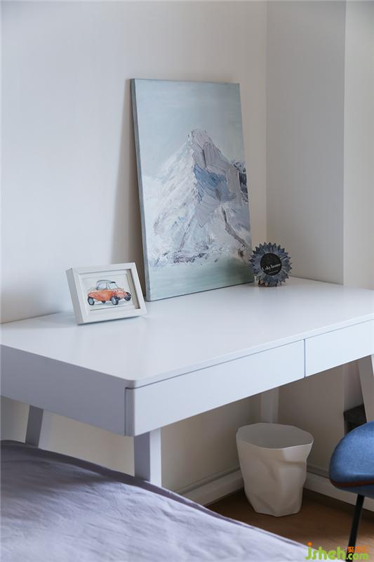 黃白色調(diào)的弟弟房間,干凈明亮,如同一道曙光清透溫暖。喜歡和哥哥一起玩樂高和滑板,所以兩個(gè)房間的床都盡量靠墻房多一些活動空間。