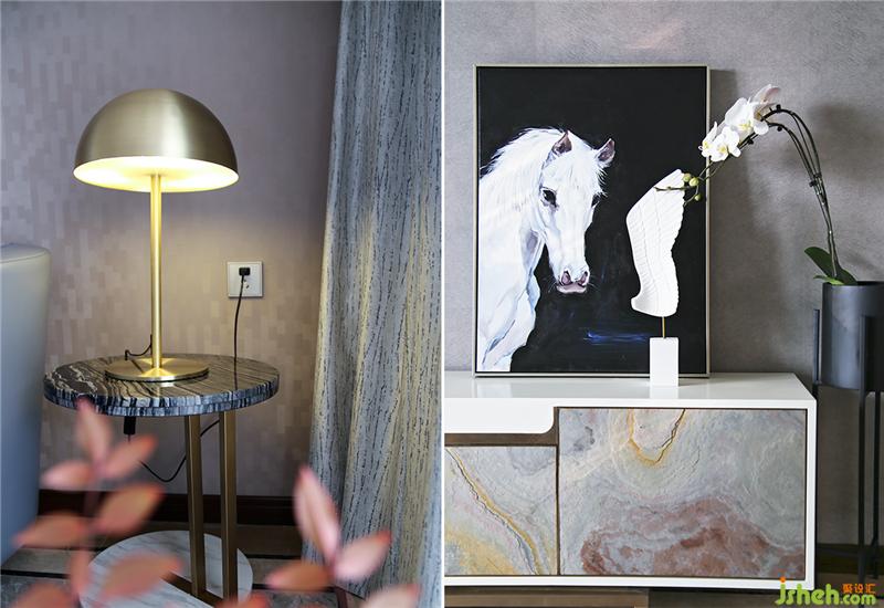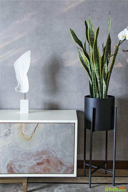 兩人分開多年后再次走到一起,小狼希望這個(gè)家里能融入許多關(guān)于蝶的元素。抽象畫中的金色羽毛、一株盛開的蝴蝶蘭,都是內(nèi)心對小蝶的牽絆。室內(nèi)設(shè)計(jì)師