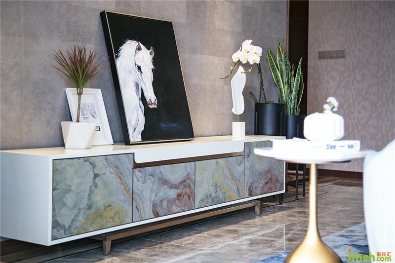 電視柜的石材肌理充滿了自然的狀態(tài)