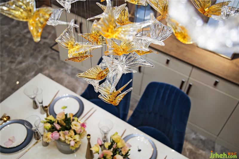 蝴蝶造型的裝置燈是這個(gè)家的 "精神堡壘",可以在這溫馨的燈光下,光影交錯(cuò)之間開心地聊著天,規(guī)劃著往后的生活,一起做飯,邀三兩好友聚餐,溫馨而又滿足。