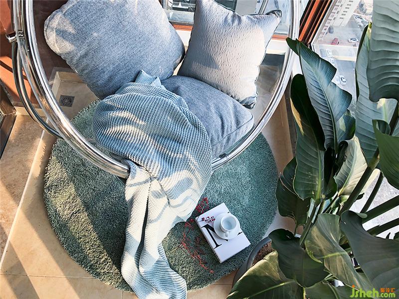 陽臺(tái)區(qū)放了太空椅,平常可以一起看看風(fēng)景或者讀讀書,晴天明媚的時(shí)候,就打開窗吸收滿滿的陽光。