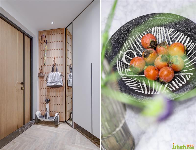 入門玄關(guān)的多功能掛鉤,所有的掛鉤都可開可合。室內(nèi)設(shè)計師