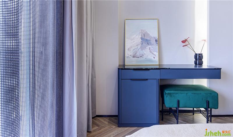 在臥室的色彩關(guān)系處理上,色彩的造型、比例、與燈光的關(guān)系可以讓空間更有層次和氛圍,所有的床頭柜都做了懸掛的安裝方式,便于打掃。室內(nèi)設(shè)計師