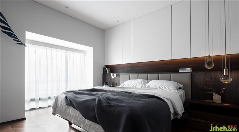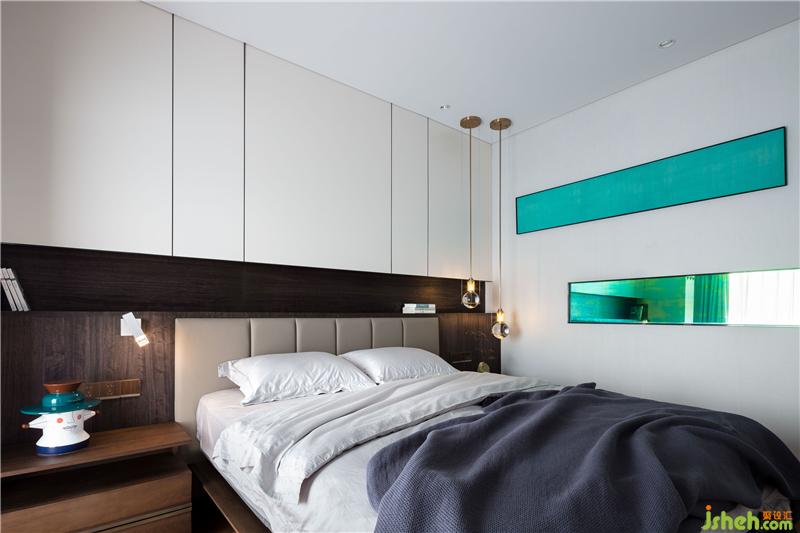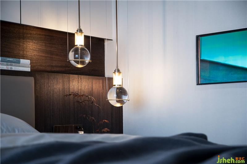 在主臥和主衛(wèi)相連的墻面上,開(kāi)出28公分高1.8米長(zhǎng)的長(zhǎng)方形,使用彩色玻璃折射出鐳射效果,會(huì)隨著走入房間的位置變化產(chǎn)生顏色的變換,,同時(shí)通過(guò)主臥落地窗的自然光照射在主衛(wèi)的墻面,與范思哲黑大理石流金的質(zhì)地?fù)u曳生輝的裝修設(shè)計(jì)。