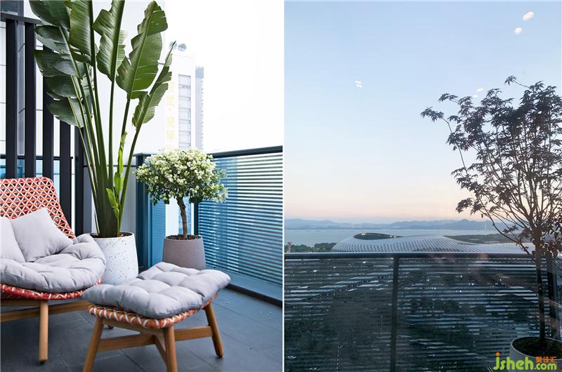 陽(yáng)臺(tái)作為室內(nèi)向室外的一個(gè)延伸空間,將原來(lái)作為雜物間的陽(yáng)臺(tái)設(shè)計(jì)成父母房休閑區(qū),是擺脫室內(nèi)封閉環(huán)境,呼吸室外新鮮空氣,享受日光,放松心情的場(chǎng)所。