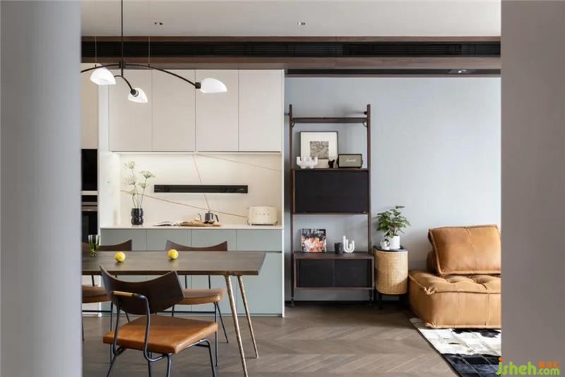 英國Square roots的床頭柜,搭配空間兼具著古典氣質(zhì)與現(xiàn)代精神的實用設(shè)計。地板上墻,模糊墻面與地面的邊界,讓空間更加有延伸感。