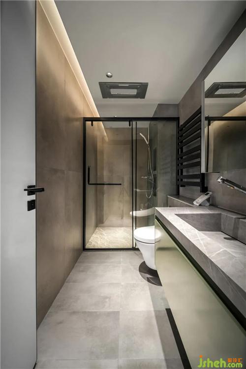 主臥主衛(wèi)的墻面轉(zhuǎn)角設(shè)計成了圓弧形減弱邊界,舒緩?fù)ǖ赖霓D(zhuǎn)折。