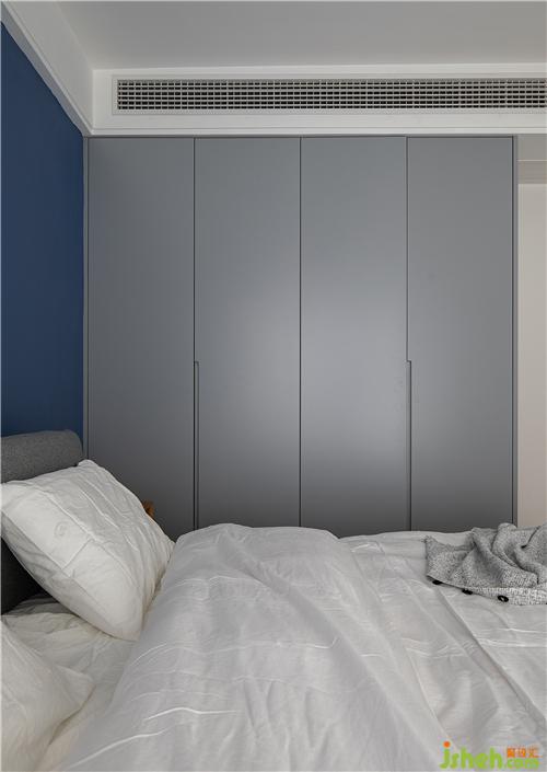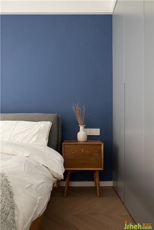 臥室中的色調(diào)與公共空間相呼應(yīng),采用了藍(lán)與白。南京裝修設(shè)計(jì)灰藍(lán)色調(diào)讓嘈雜的生活瞬間安靜下來,帶人走入放松舒適的休憩氛圍。