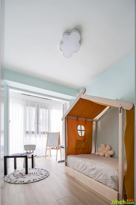 兒童房擴(kuò)大了通向陽(yáng)臺(tái)的門,把采光最大限度地引進(jìn)來(lái)。可愛(ài)的冰棍床可以滿足現(xiàn)在小朋友的身高,之后還可以拉伸成成人尺寸。繪畫桌椅和小畫板來(lái)自宜家。