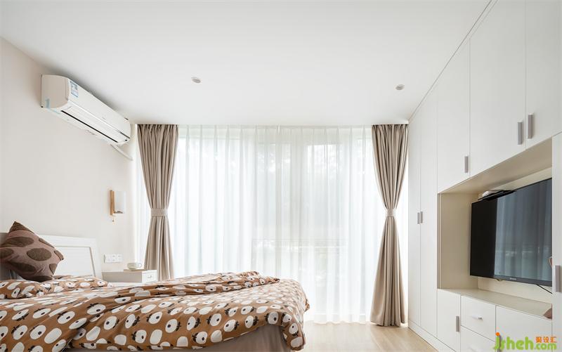 老人房刷了淺焦糖色,柔和了光線,讓整個(gè)空間都溫柔起來(lái)。外婆的衣物不多,喜歡自己一個(gè)人看電視發(fā)呆,因此衣柜設(shè)置了電視位。最靠?jī)?nèi)的兩扇長(zhǎng)柜門里,把不用的外機(jī)位并進(jìn)來(lái),里面暗藏了一個(gè)小儲(chǔ)物間。