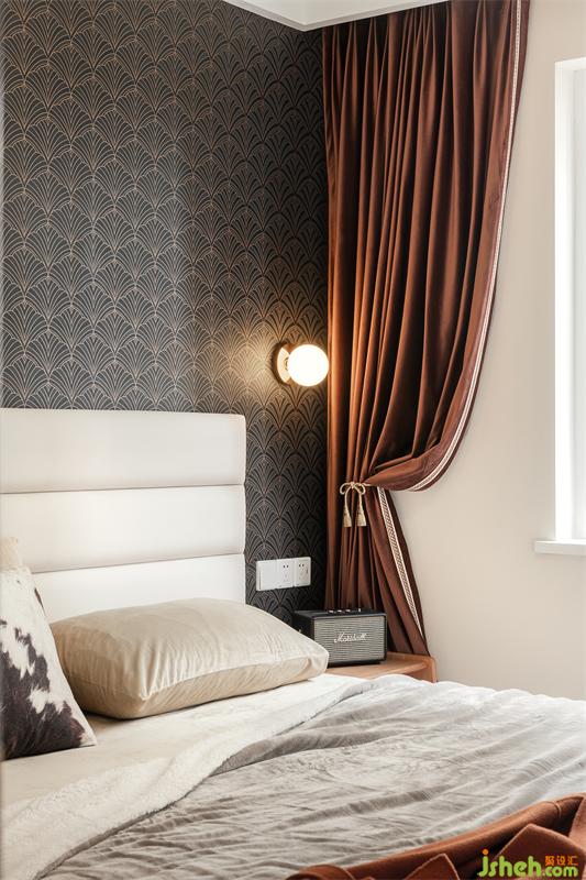 主臥是采光最好的房間,采用深藍(lán)色的墻紙既呼應(yīng)了主題色,又增加臥室的靜謐感,白色的皮床干凈又有張力,圓球形的壁燈俏皮可愛,宛如兩顆珍珠掛在床頭,提升了空間質(zhì)感。