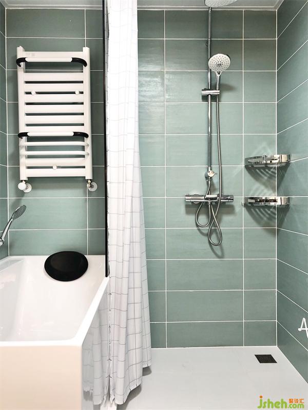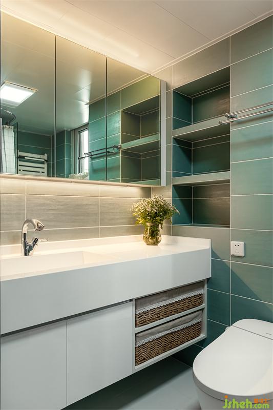 衛(wèi)生間做了整排洗手臺(tái)以及整排鏡柜,并借著包管做了壁龕,把儲(chǔ)物空間最大化。洗臉池為定制的人造石一體盆,水池進(jìn)行了加長,方便早上兩個(gè)人同時(shí)洗漱,上班和上學(xué)誰也不耽誤。
