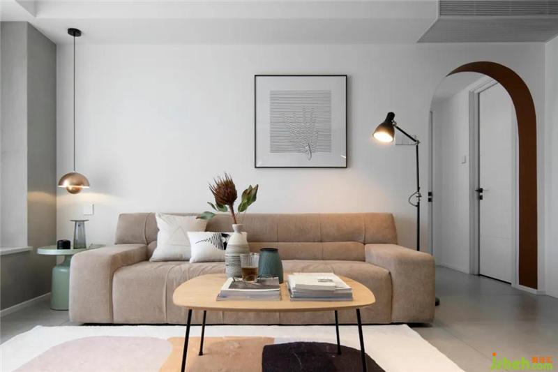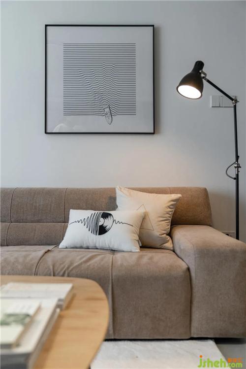 淺駝色的三人位沙發(fā),憨態(tài)可愛,與淺青色的邊幾搭配相得益彰,低飽和的色彩總是耐看些,也不會產(chǎn)生突兀感深圳裝修設計。兩側(cè)使用吊燈+落地燈,不對稱的形式讓生活平添一份趣味。發(fā)現(xiàn)了嗎?藝術(shù)漆將電視區(qū)與沙發(fā)區(qū)連接到了一起哦~