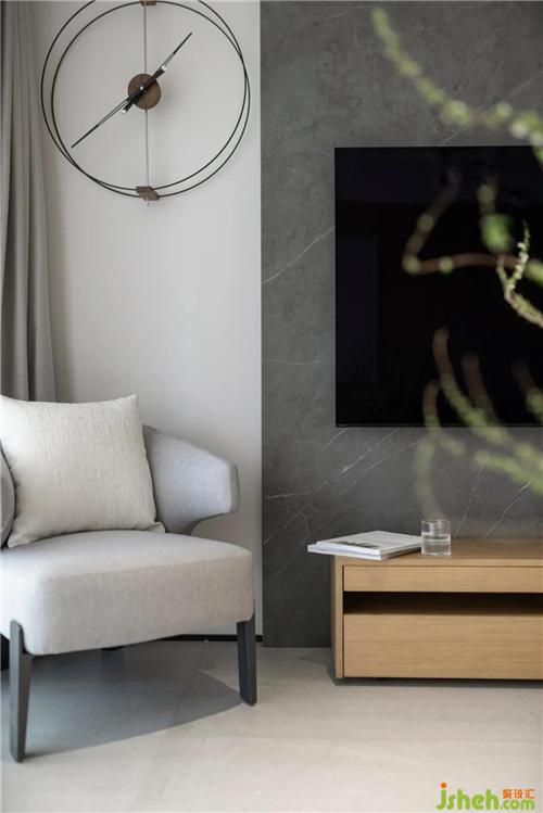 深灰色布藝的沙發(fā)與單人椅在色調上與背景墻巖板相呼應,讓整個空間更加趨于整體化,視感上更覺內斂沉穩(wěn)。高低錯落有致的圓形白色大理石茶幾點亮了這個空間深圳裝修設計,不會顯得過于沉悶,圓圓的小墩更添加了一絲憨厚可愛的氣氛。綠植的存在讓這個區(qū)域瞬間生氣起來~