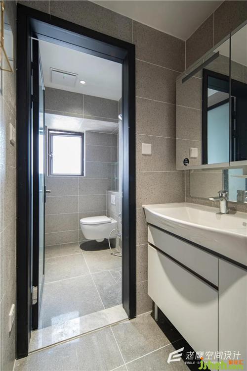 衛(wèi)生間干濕區(qū)分離,日常同時(shí)使用也不互不干擾。整體也是黑白灰的搭配,墻地面水磨石紋理更加有質(zhì)感且好打理,居住久了美觀又實(shí)用才是最棒的,這次魚和熊掌我想兼得