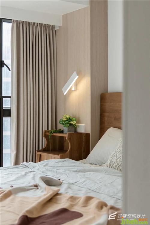 木作床頭柜,可調(diào)節(jié)的閱讀壁燈,臥室一角滿滿的溫馨及舒適感~