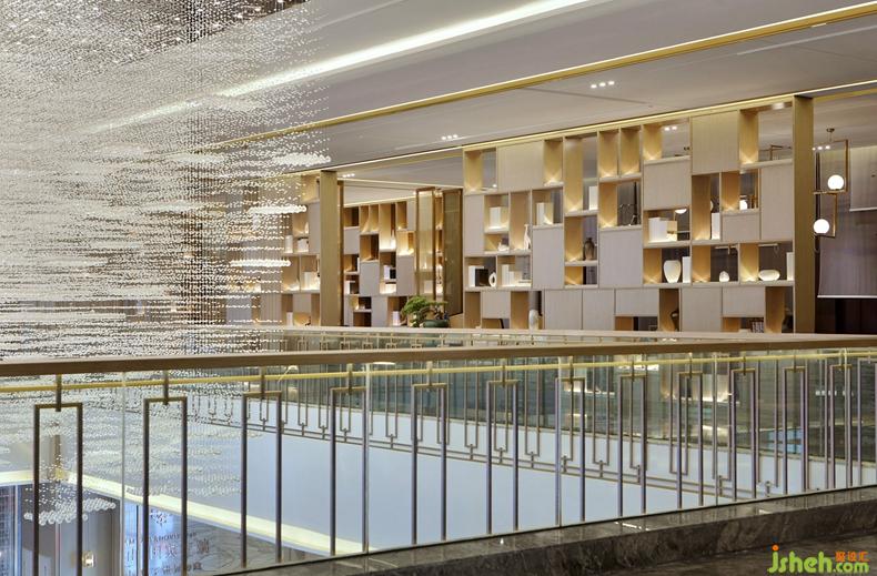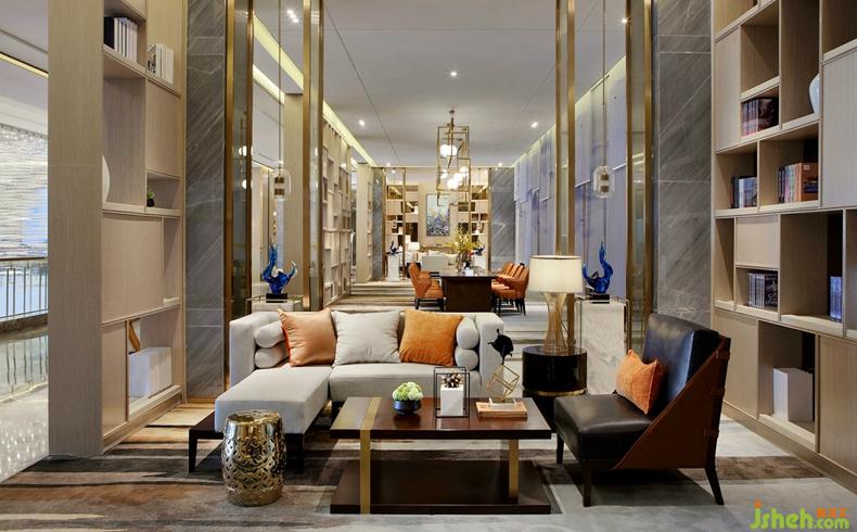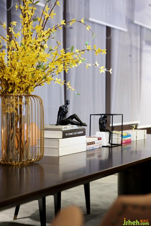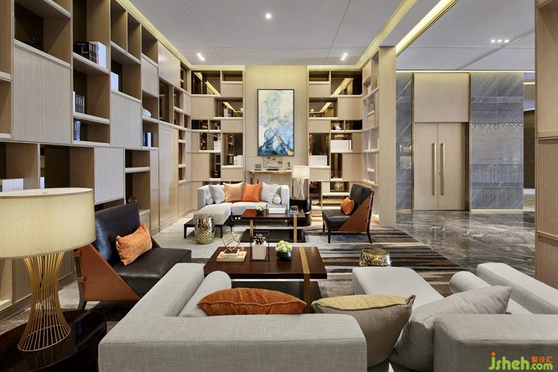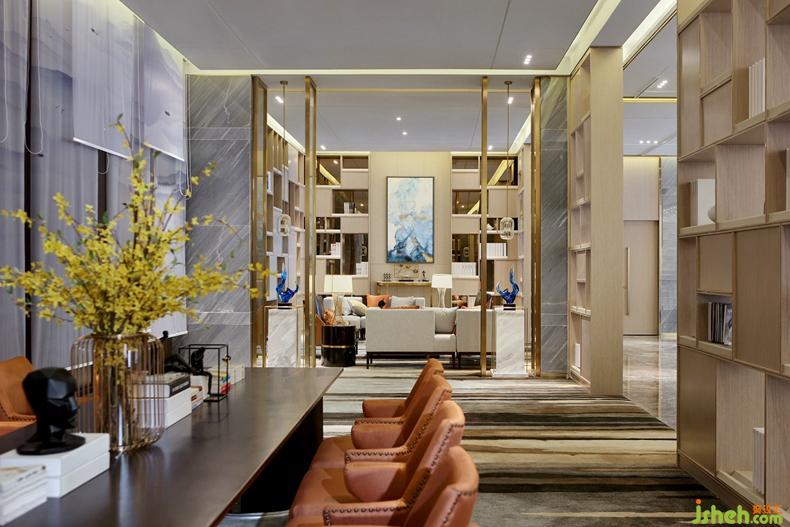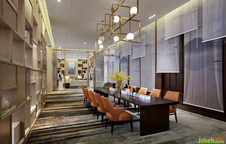 縱橫延伸的格局,大氣疏朗的風(fēng)度,于此基調(diào)上,設(shè)計(jì)還融入了煙波浩渺的山水元素,令空間別有一番清逸況味。