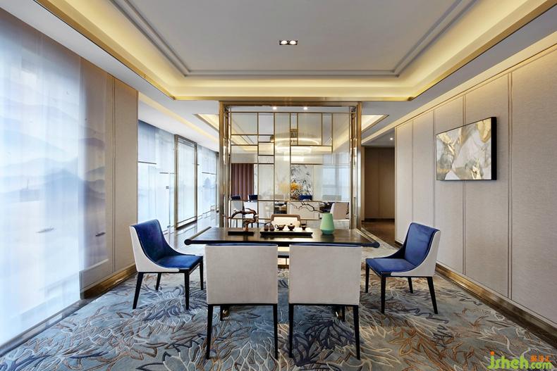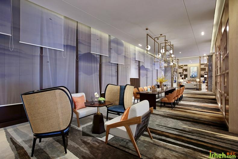 洽談區(qū)配以山水意境簾幕,客戶在交談之余亦不乏陶冶情操,將迷人美景盡收眼底。