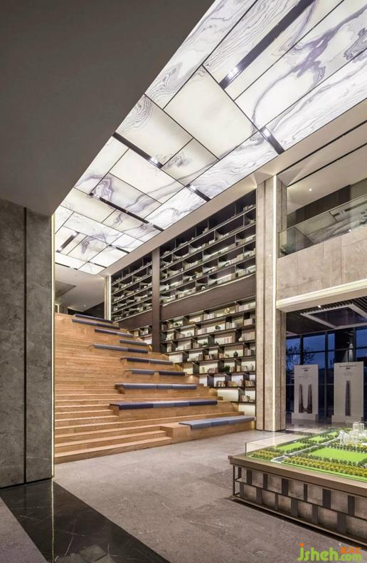 行進(jìn)、轉(zhuǎn)移,在此間信步閑庭,邂逅階梯式書(shū)吧。LENG設(shè)計(jì)團(tuán)隊(duì)在此構(gòu)造了一個(gè)休憩、閱讀、放松、攀爬的公共空間,階梯大面積運(yùn)用原木色,呈現(xiàn)出柔和溫潤(rùn)的觀感。