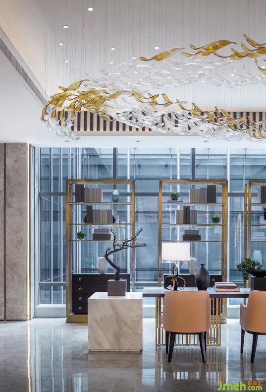 像是一場(chǎng)秋天的童話,懸掛而下的水晶吊燈隨波蕩漾,樹(shù)在伸展它金黃色的枝椏。
