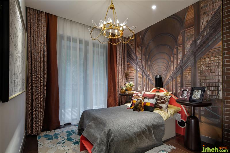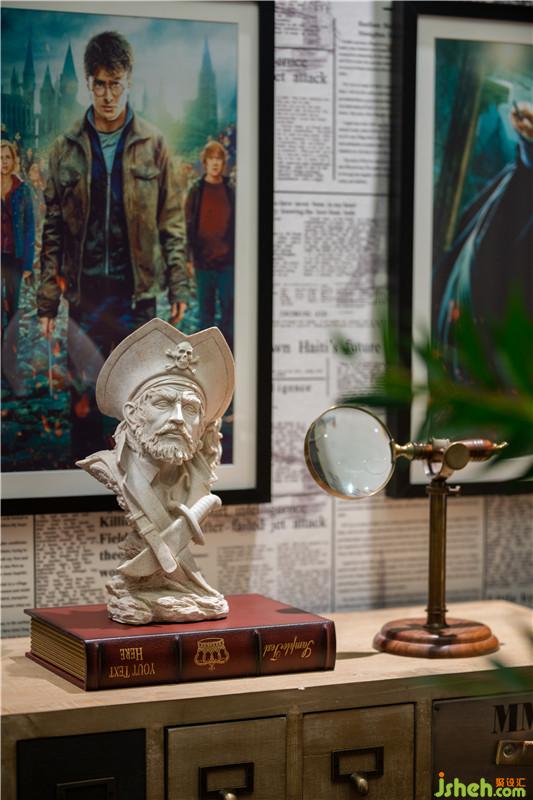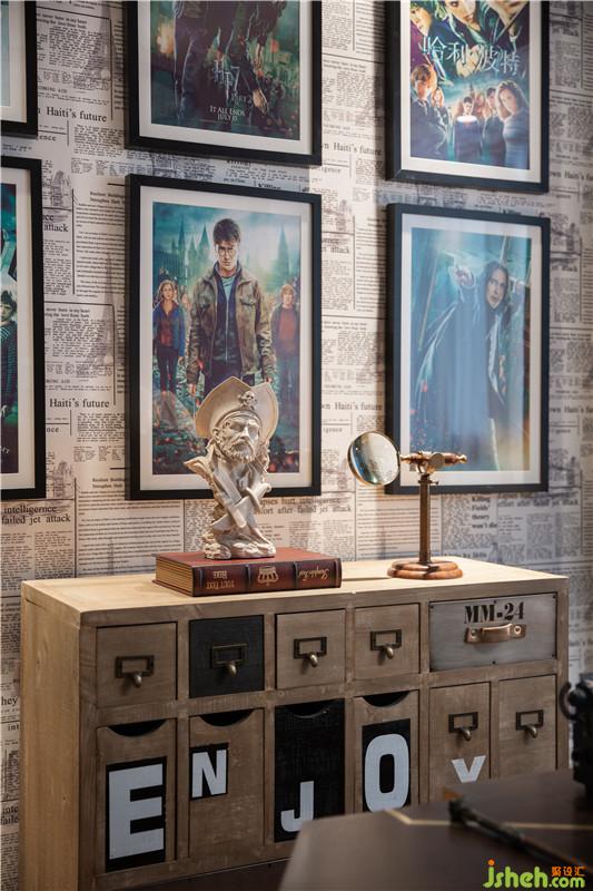 墻面鋪滿復(fù)古式報(bào)紙樣式的墻紙,讓人不由聯(lián)想到《哈利波特》中的預(yù)言家日報(bào),各類英式精致飾物為空間更添英倫氣息。深圳裝修公司