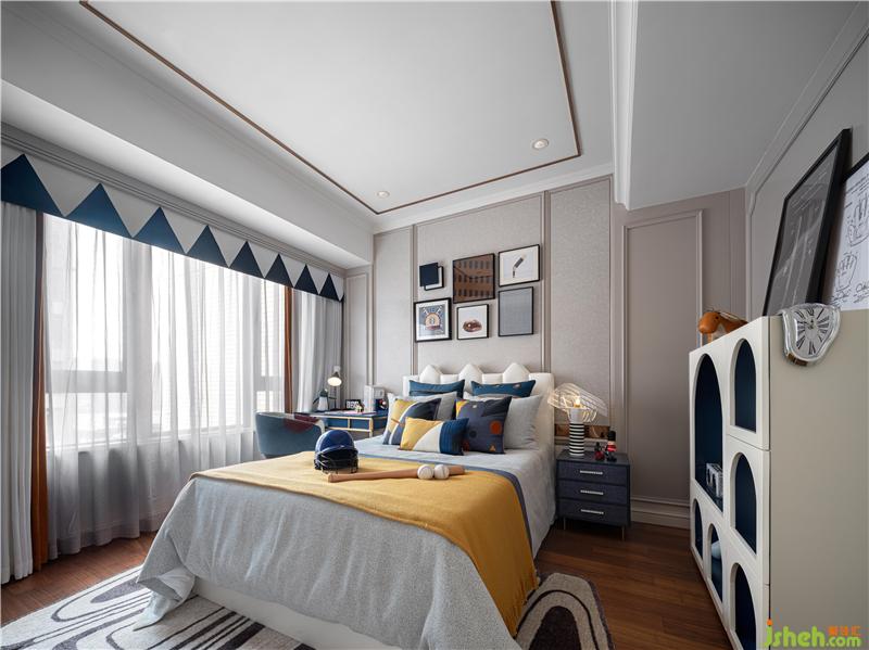男孩房以棒球主題為陳設(shè)亮點(diǎn),是運(yùn)動(dòng)的熱血,是追求的夢想樂園。夜深人靜,男孩終于在夢中贏得了那場意難平的比賽。