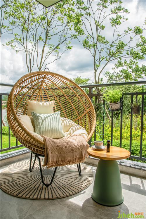 坐在陽臺的吊椅上