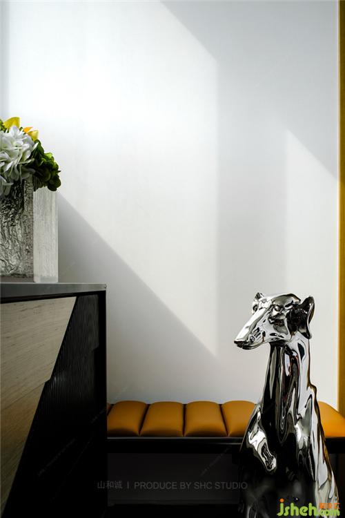 冷元寶先生使用愛馬仕橙色系加上高級灰鋪染出空間高端優(yōu)雅的精致之氣,黑白相間的大理石墻壁頗具流動感,藝術(shù)感十足的花瓶、生命力旺盛的綠植,點綴其間,層次分明,豪華的質(zhì)感和整個圓滑的輪廓,無不彰顯出主人高雅的品味。