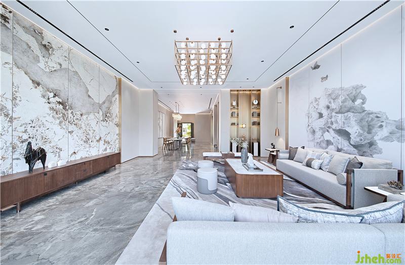 客廳電視背景,山水紋的巖板,淺深山色高低樹(shù),一片江南水墨圖