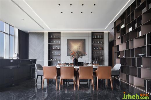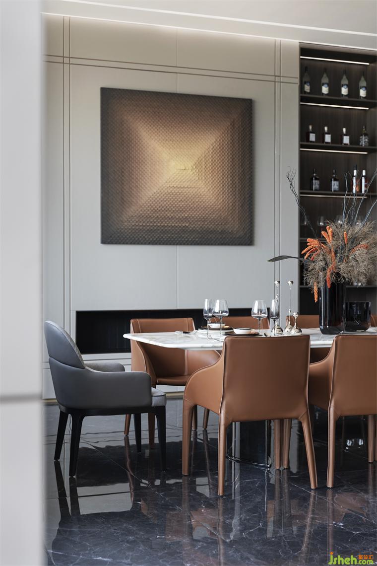 餐廳選用簡潔的意式設計家具,注重線條的簡潔和材質的質感。采用石材和真皮等高質量材料,體現(xiàn)品質感。