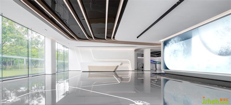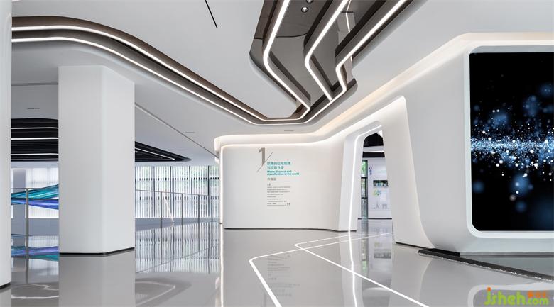 “圓”象征著平等、包容、和諧;“方”象征著井然有序、松緊有度、遠(yuǎn)近有別。展廳設(shè)計(jì)設(shè)計(jì)師通過(guò)流線與光勾勒空間,用線與光結(jié)合后的曲線序列構(gòu)建流動(dòng)的未來(lái)感空間。