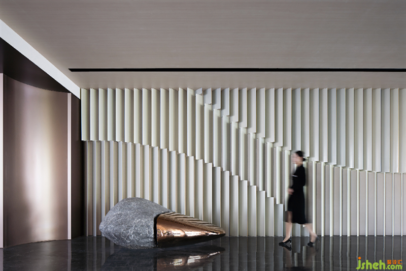 邏輯并不復(fù)雜的“波浪”立面,將白色的層次與光線制造的陰影相互交織切割,形成一種連貫的視覺(jué)呈現(xiàn),逆向的模塊翻折詮釋出空間層次的內(nèi)在涵義。幾何結(jié)構(gòu)的拼接曲線引入另一個(gè)視覺(jué)角度,不同時(shí)光于是有了不同“景觀”的呈現(xiàn)。