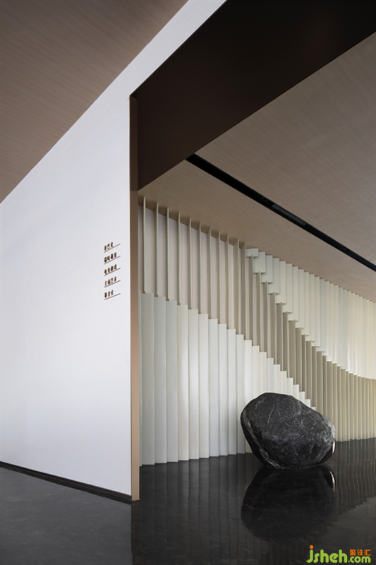 樣板房設(shè)計(jì)前廳以“白浪”的流動(dòng)與“金石”的穩(wěn)定為整體設(shè)計(jì)的底層思維,將生命的動(dòng)態(tài)凝練為藝術(shù)的靜止,使自然的靜止衍生出時(shí)光的流動(dòng)。動(dòng)靜之中,生活的美感得以闡釋和呈現(xiàn)。